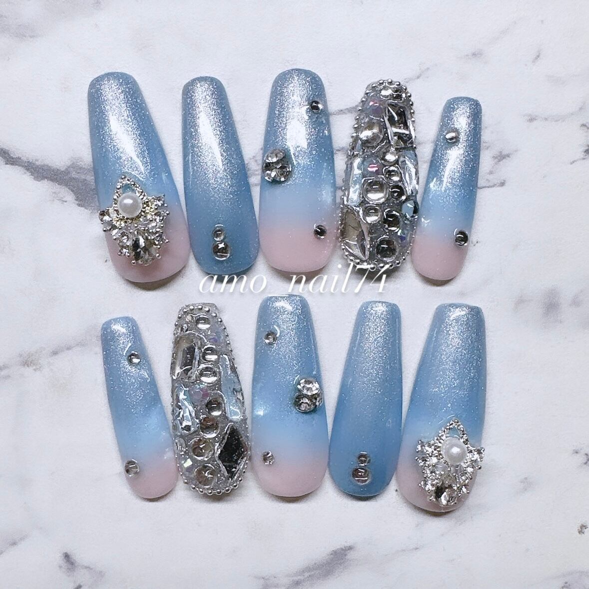 【現品販売】水色ラメグラデネイル